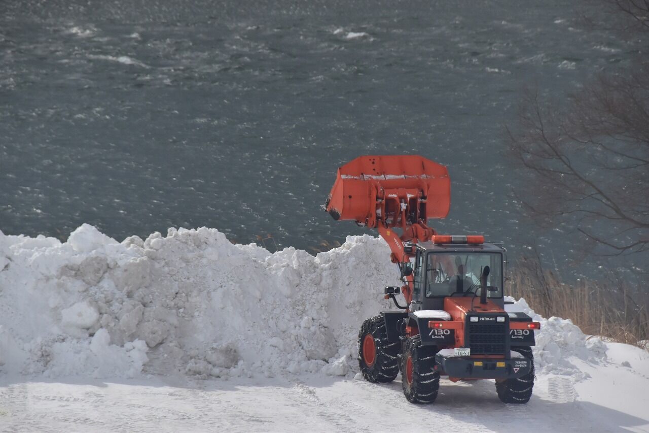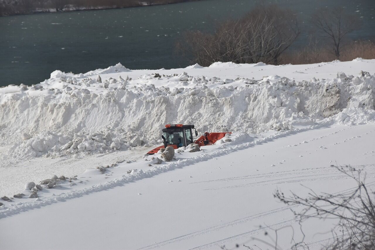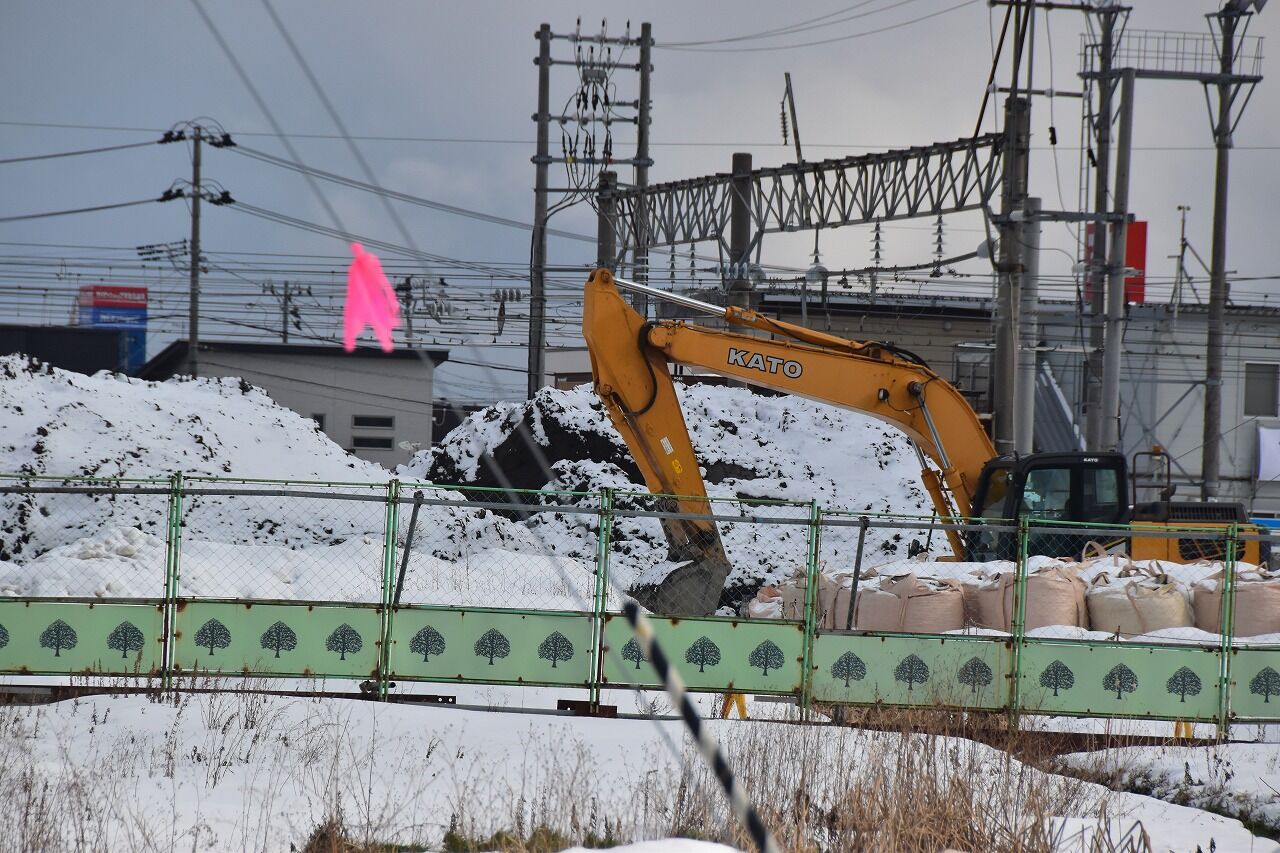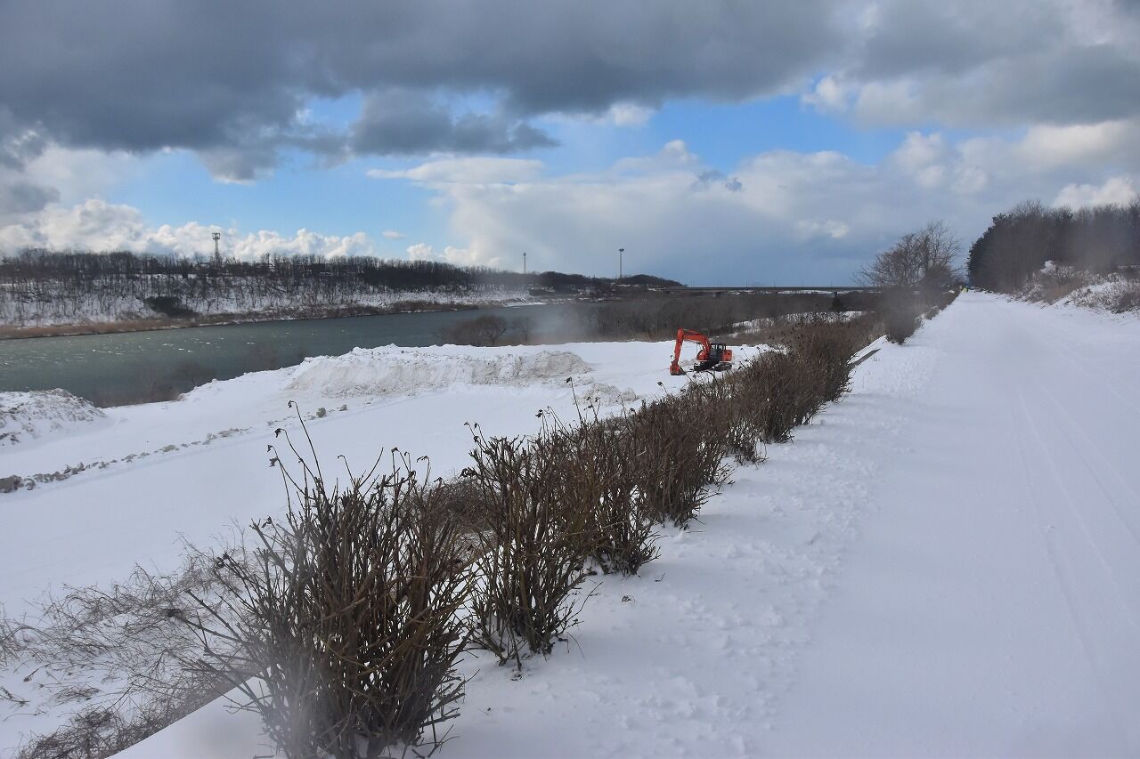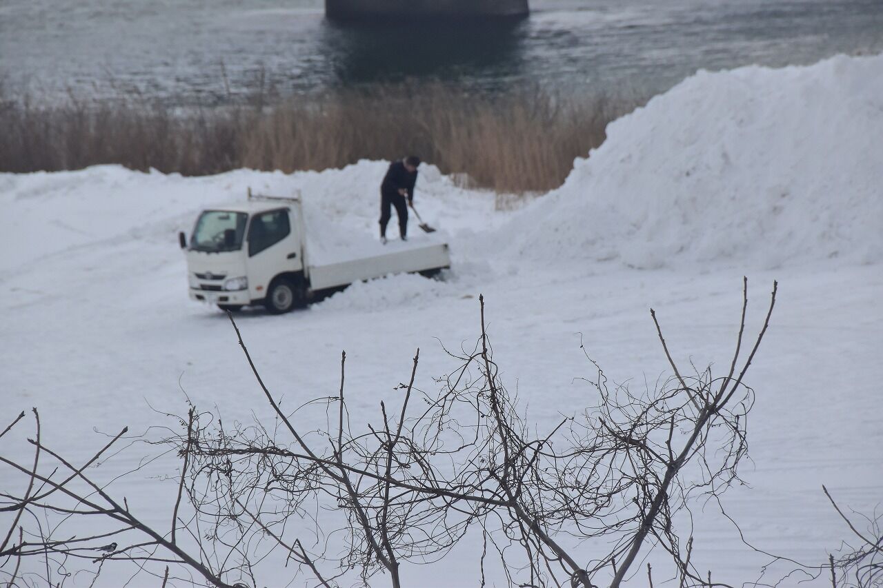 雄物川の河川敷にある秋田市の雪捨て場です。