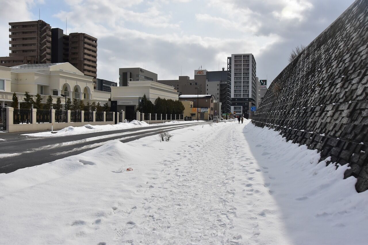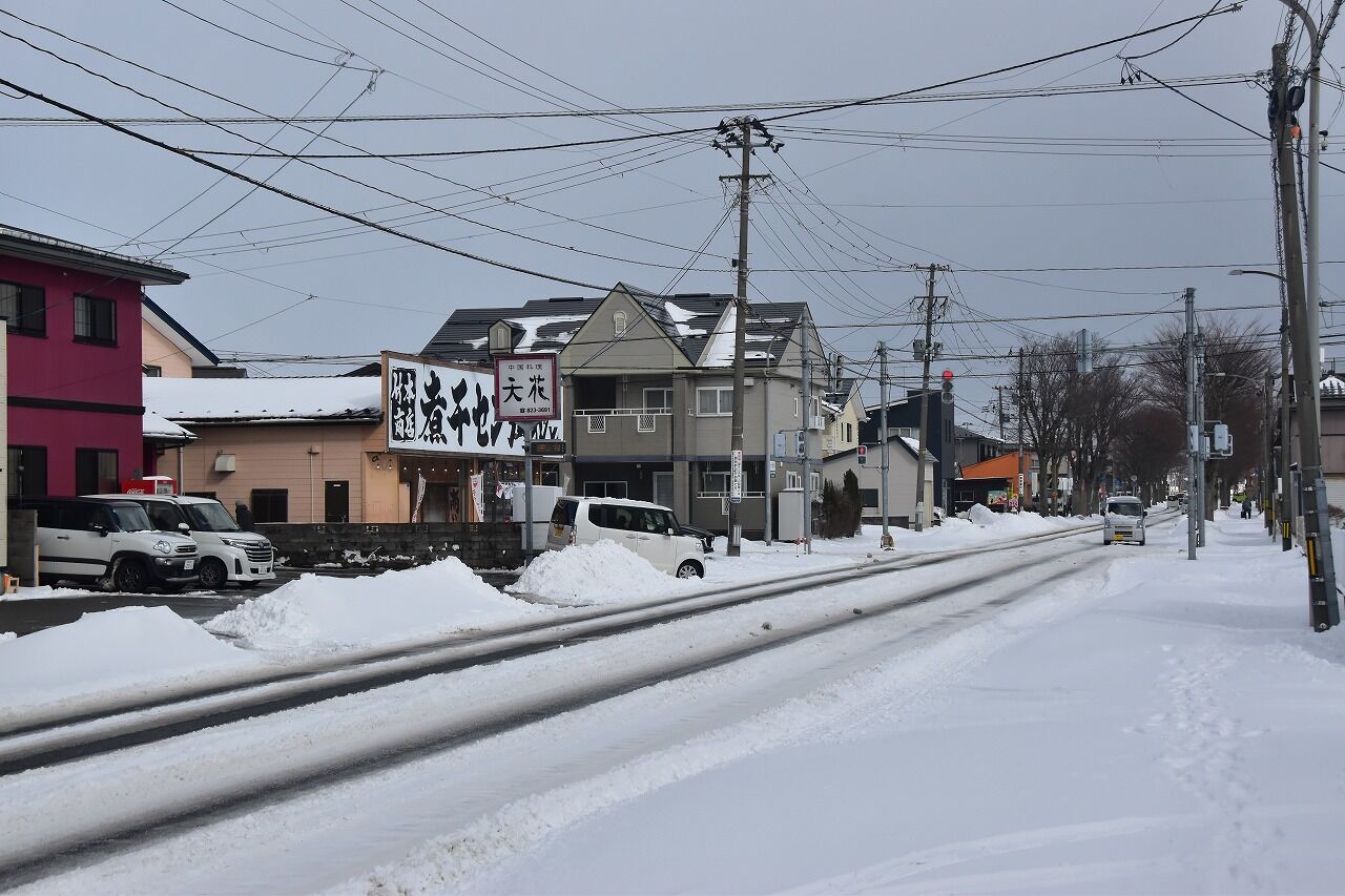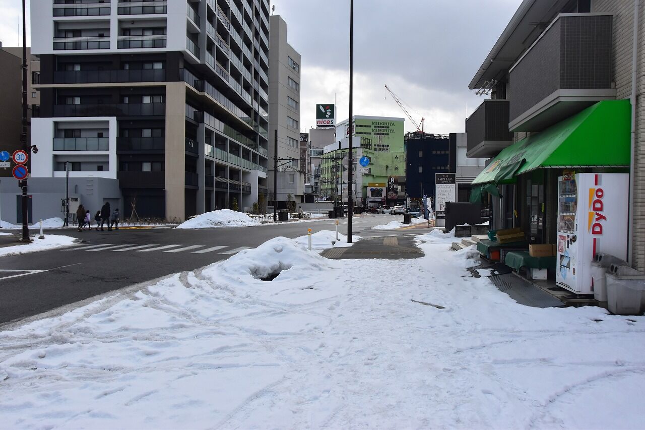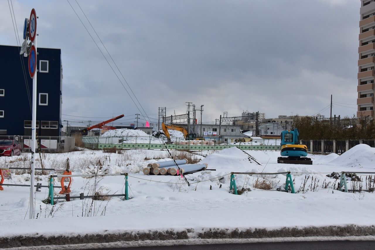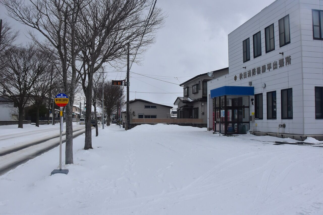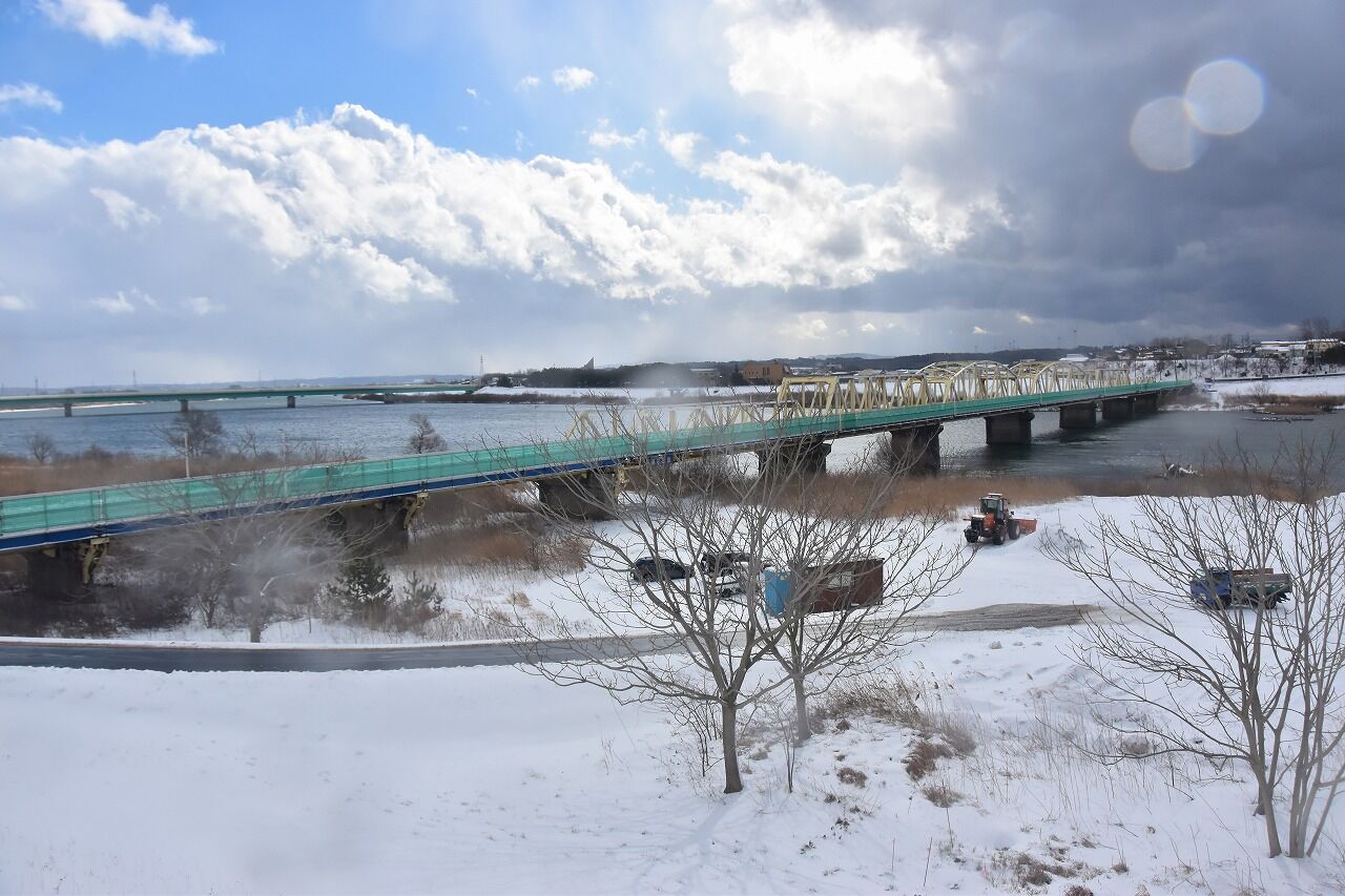 雄物川の河川敷にある秋田市の雪捨て場です。